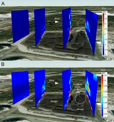 - N₂O from dewatered sludge rivals CH₄ as a CO₂e forcer and fluctuates unpredictably with pile conditions (oxygen, pH, C∕N ratio).